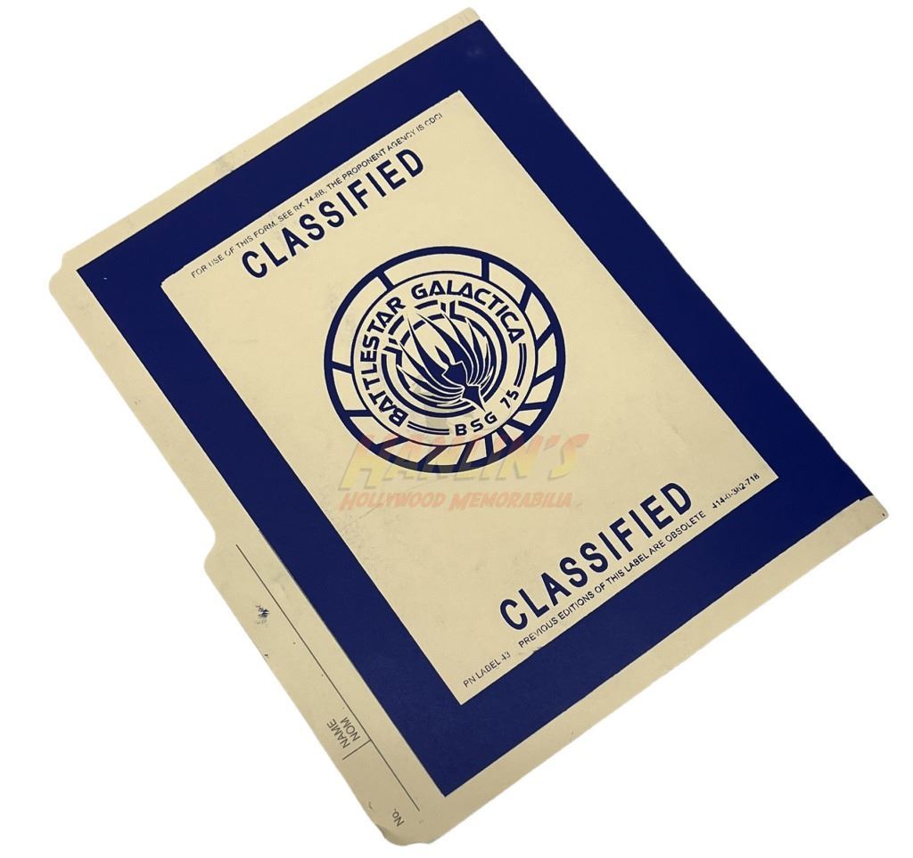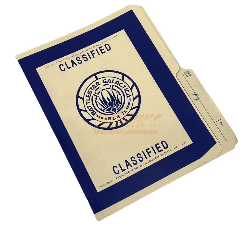 Original file folder used in the science fiction television series 'Battlestar Galactica' (2004 - 2009) where, when an old enemy, the Cylons, resurface and obliterate the 12 colonies, the crew of the aged Galactica protect a small civilian fleet - the last of humanity - as they journey toward the fabled 13th colony, Earth.
