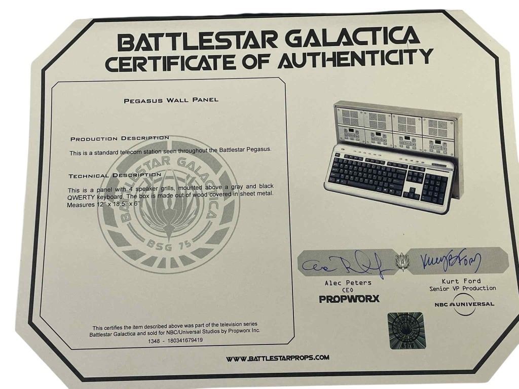 Original telecom station used throughout the Pegasus in the science fiction television series 'Battlestar Galactica' (2004 - 2009) where, when an old enemy, the Cylons, resurface and obliterate the 12 colonies, the crew of the aged Galactica protect a small civilian fleet - the last of humanity - as they journey toward the fabled 13th colony, Earth.