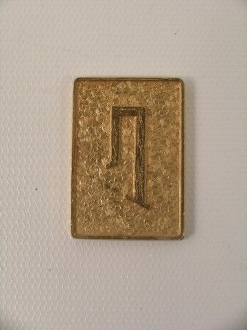 Cubits were a form of government-regulated currency used throughout the Twelve Colonies in both the original series and remake of "Battlestar Galactica". They were usually seen in square "coin" form (sometimes used in pyramid games), and were made of "auric" (the Colonial term for gold). This is an actual screen-used faux-gold "Cubit" from the original series. Approx 1/5"x1".