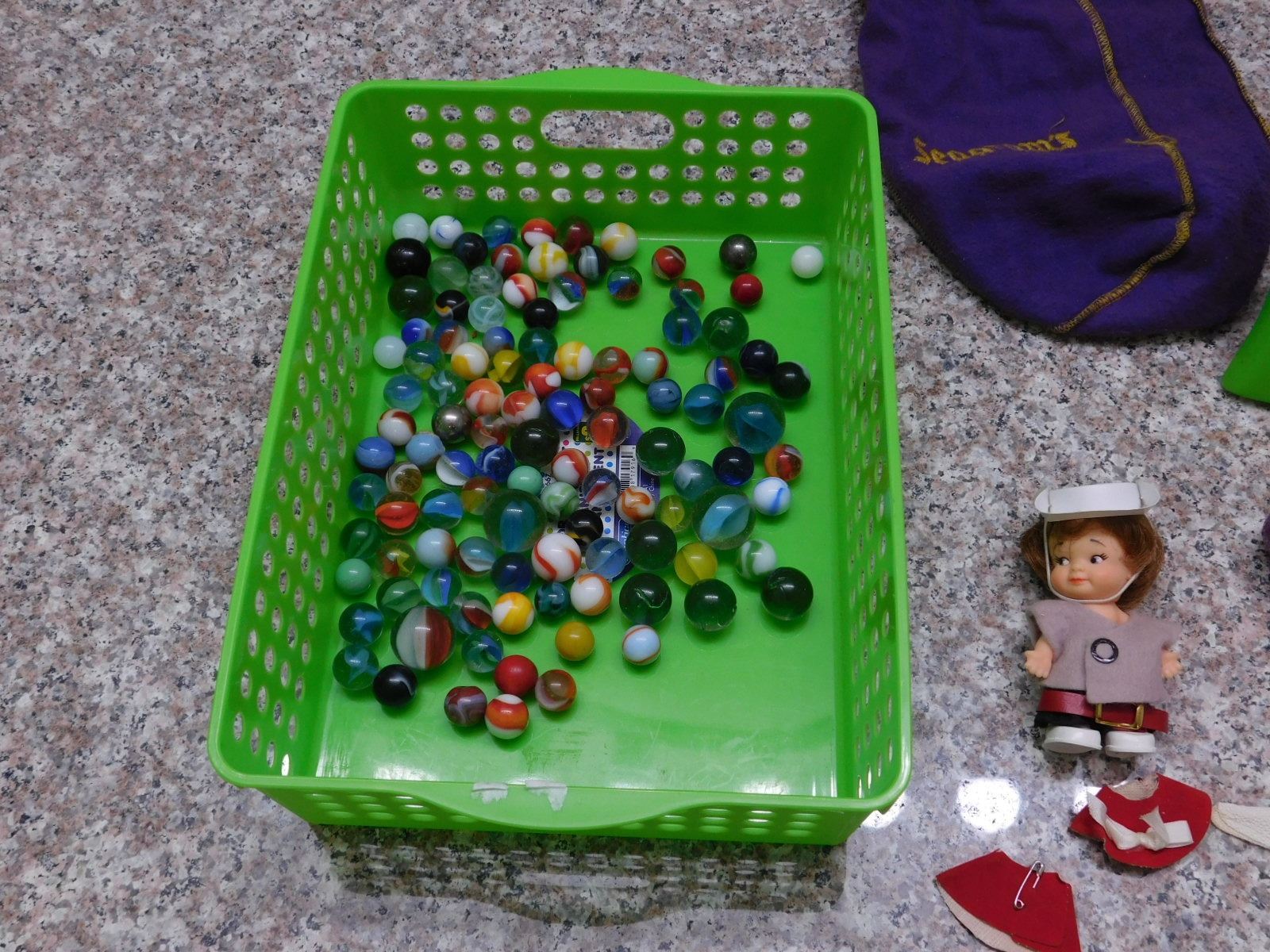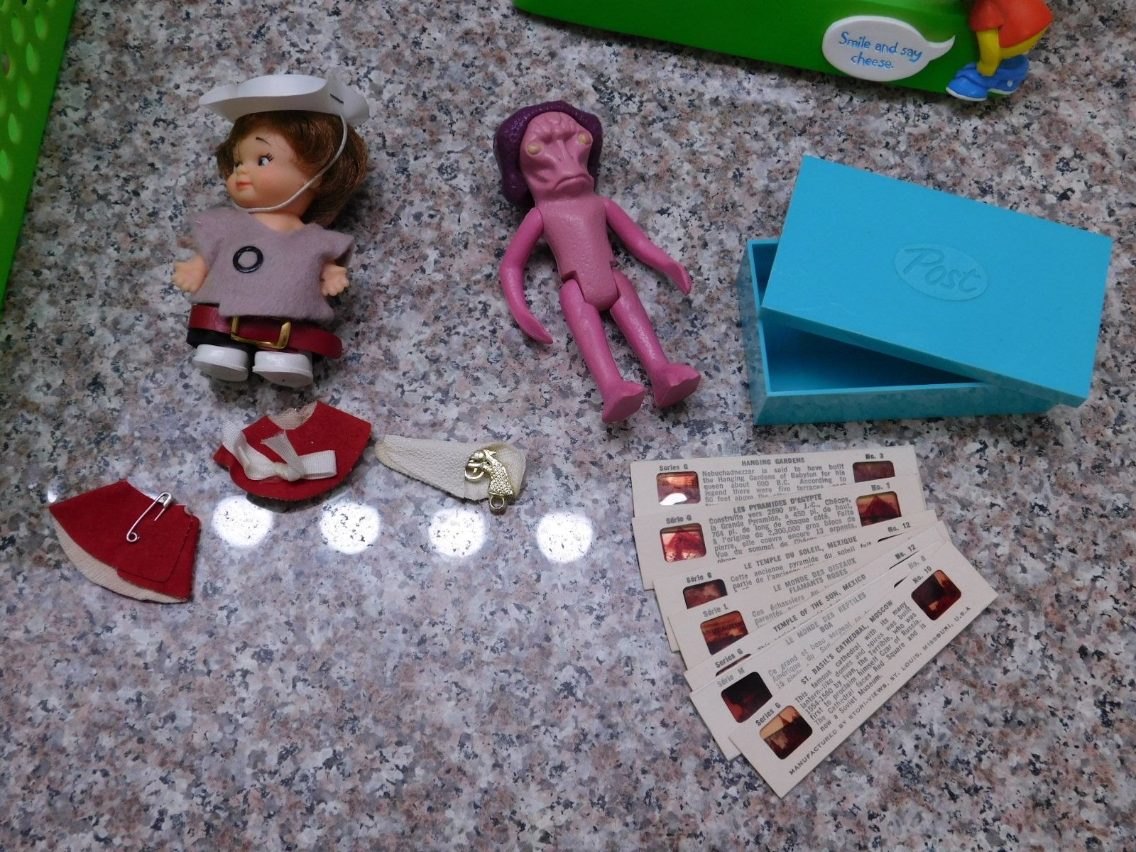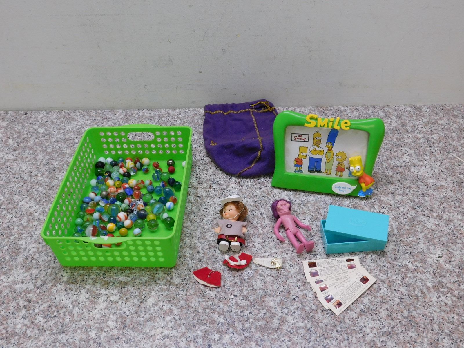 Battlestar Galactica, Simpsons Picture Frame, Marbles Seagrams Bag, Viewmaster, Doll