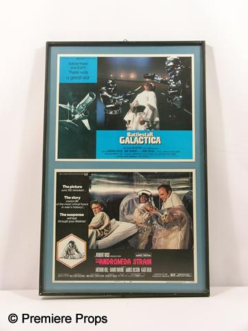 Two metal framed original movie poster cards, one of "Battlestar Galactica" and the other of "The Andromeda Strain." (approx. 16 1/4" x 25 1/4")