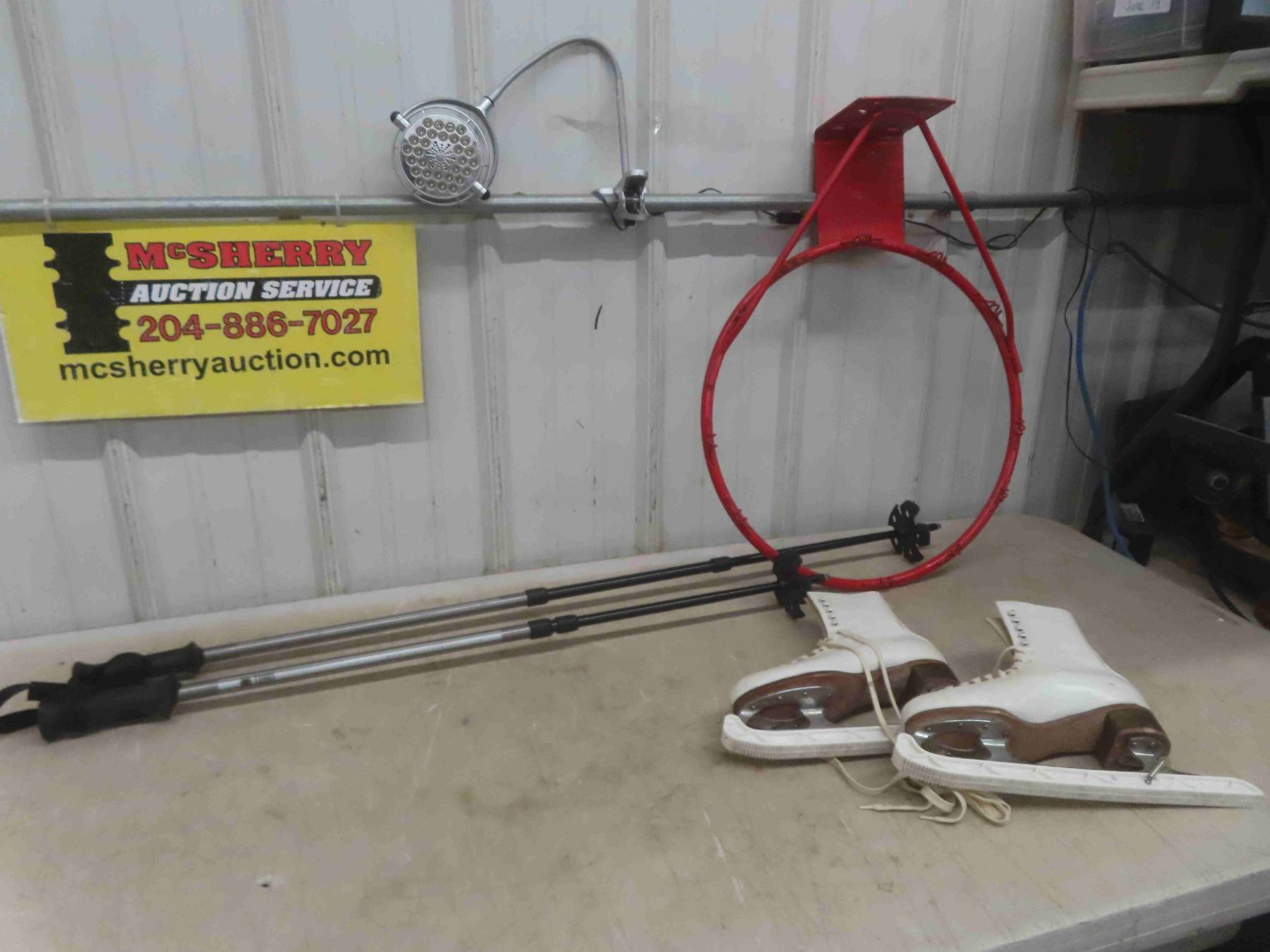 Bauer Ladies Skates Size 7 with Guards, 2 Snow Shoe Poles, Basketball Hoop 18'' Diameter No Net