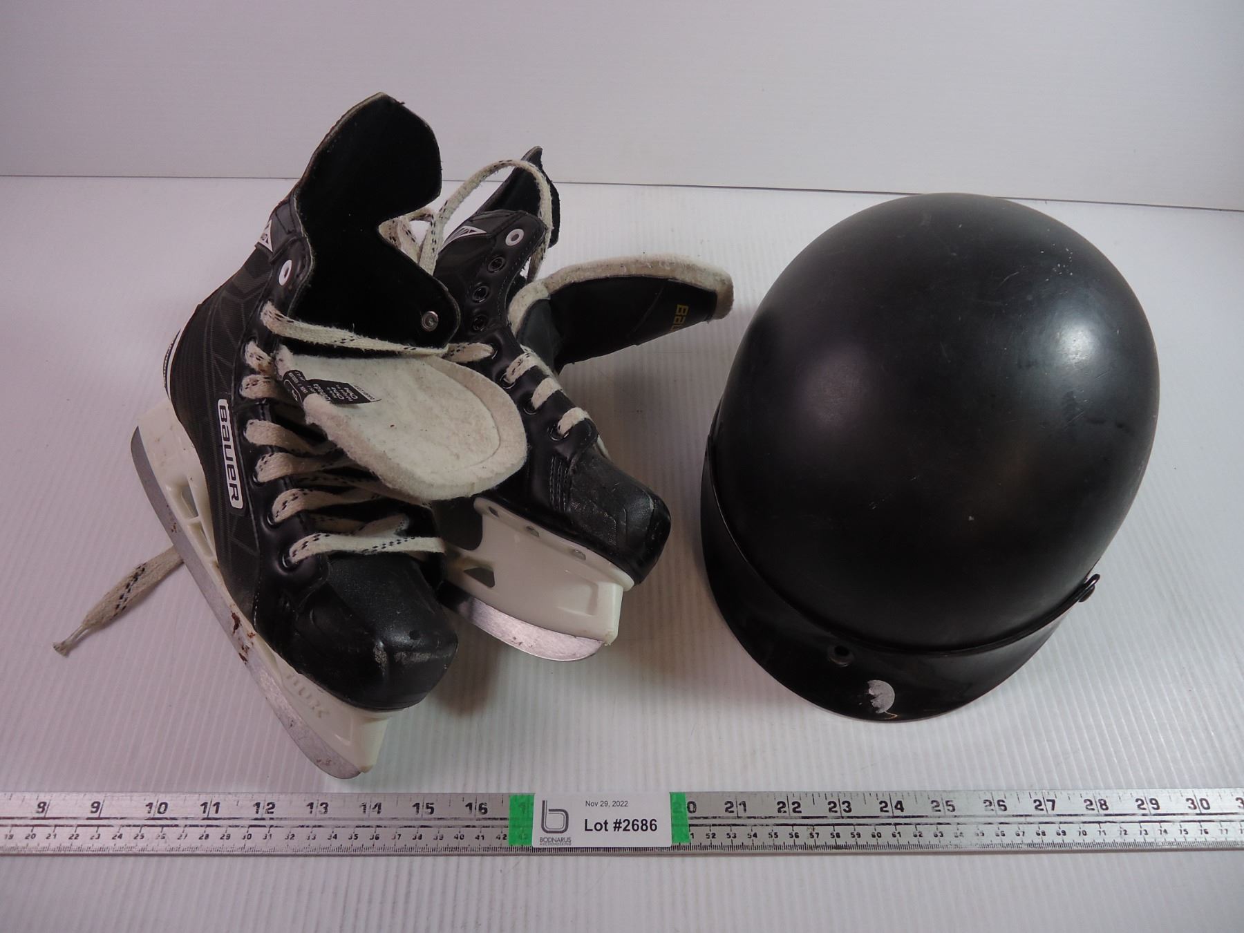 Bauer Skates SZ 4 and Motorcycle Helmet