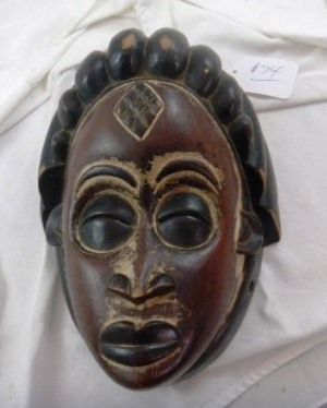 African Bauli Mask Measure 11x9x5 inches. Condition - heavy patina and some wear. Shipping $30.00