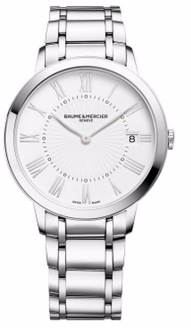 Model: 10261 - CASE = [Material:Stainless Steel], [Case Diameter:36.5], [Case Thickness:5.65mm], [Case Back:Solid], [Water Resistant:50 Meters - 165 Feet], [Crystal:Scratch Resistant Sapphire],; DIAL = [Color:White with Central Sunray Guilloche Decor, Silver Hands and Roman Numerals],; MOVEMENT = [Type:Quartz],; BAND = [Clasp:Folding], [Type:Stainless Steel], (Usually ships in 1 to 2 weeks.)