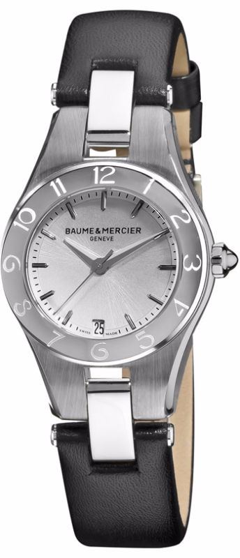 Model: 10008 - CASE = [Material:Stainless Steel], [Case Diameter:27], [Case Thickness:8mm], [Water Resistant:50 Meters - 150 Feet], [Crystal:Scratch Resistant Sapphire],; DIAL = [Color:Silver],; MOVEMENT = [Type:Battery Powered Quartz],; BAND = [Clasp:Tang Buckle], [Type:Calfskin Leather Black], (In Stock - Ready to ship.)