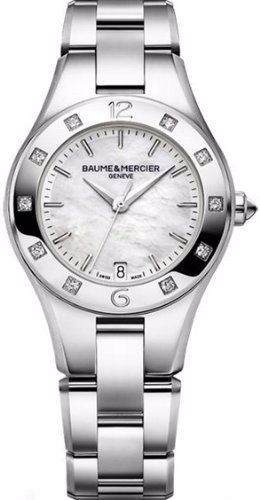 Model: 10071 - CASE = [Material:Stainless Steel Brushed & Polished], [Case Diameter:32], [Case Thickness:8.3mm], [Bezel:Fixed with Partial Diamonds], [Case Back:Solid], [Water Resistant:50 Meters - 150 Feet], [Crystal:Scratch Resistant Sapphire],; DIAL = [Color:Mother of Pearl],; MOVEMENT = [Type:Battery Powered Quartz],; BAND = [Clasp:Hidden Folding Clasp], [Type:Stainless Steel Brushed & Polished], (Usually ships in 1 to 2 weeks.)