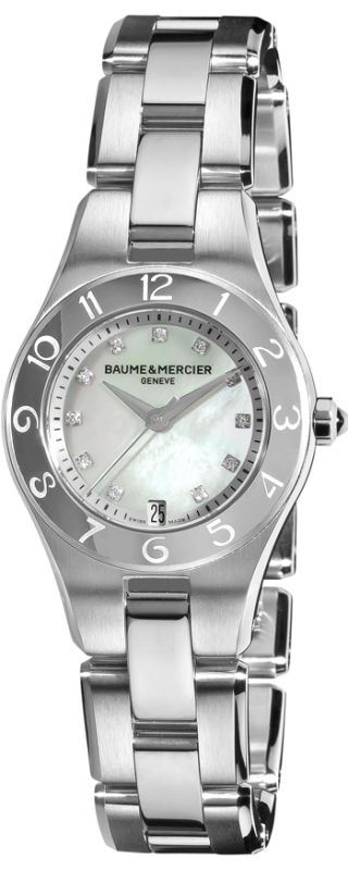 Model: 10011 - CASE = [Material:Stainless Steel], [Case Diameter:27], [Case Thickness:8mm], [Water Resistant:50 Meters - 150 Feet], [Crystal:Scratch Resistant Sapphire], DIAL = [Color:Mother of Pearl], MOVEMENT = [Type:Battery Powered Quartz], BAND = [Clasp:Hidden Folding Clasp], [Type:Stainless Steel Brushed & Polished], (Usually ships in 2 to 4 business days.)