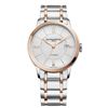 Model: 10217 - CASE = [Material:Stainless Steel], [Case Diameter:40], [Case Thickness:8.95mm], [Bezel:Fixed], [Case Back:Skeleton], [Water Resistant:50 Meters - 165 Feet], [Crystal:Scratch Resistant Sapphire], DIAL = [Color:Silver], MOVEMENT = [Type:Automatic Self Winding], BAND = [Clasp:Folding Clasp], [Type:Two-Tone Stainless Steel And Rose Gold], (Usually ships in 1 to 2 weeks.)