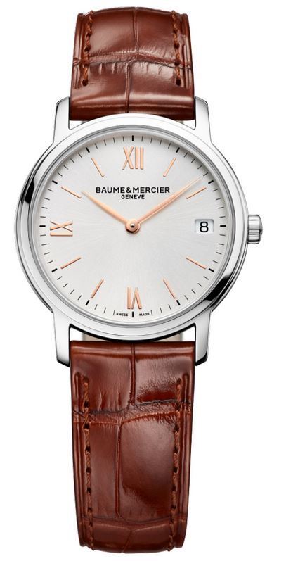 Model: 10147 - CASE = [Material:Stainless Steel], [Case Diameter:33], [Case Thickness:6.2mm], [Bezel:Fixed], [Case Back:Solid], [Water Resistant:30 Meters - 100 Feet], [Crystal:Scratch Resistant Sapphire], DIAL = [Color:Silver], MOVEMENT = [Type:Quartz], BAND = [Clasp:Deployment], [Type:Brown Alligator Leather], (Usually ships in 1 to 2 weeks.)