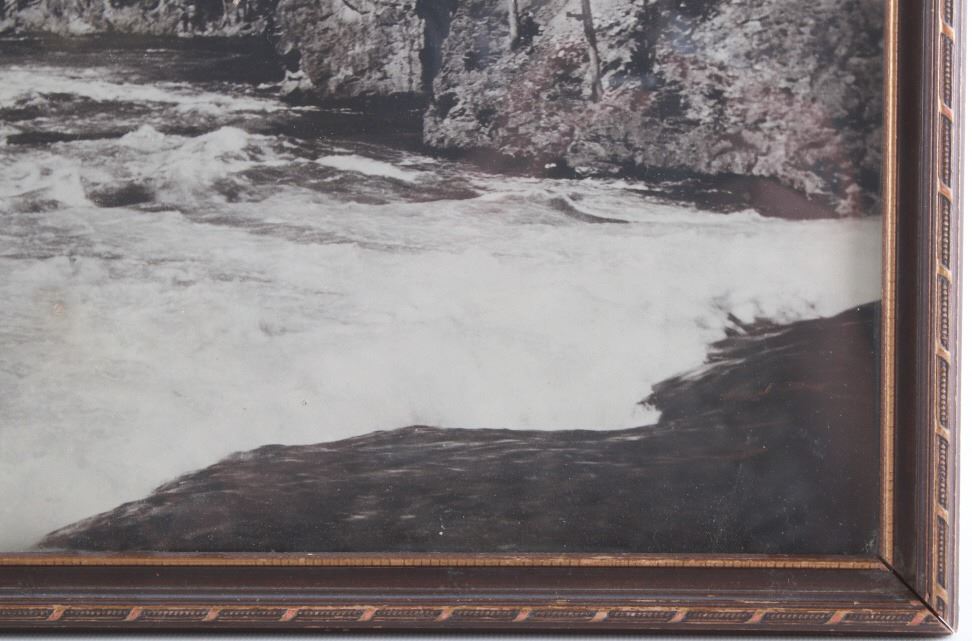The photograph is in overall good condition with minor damage to the lower right corner, period gilt trimmed frame has scratches from wear consistent for its age, rear paper covering is weathered also consistent with handling for its age. Visible art measures 18"L x 10.75"W, frame measures 19.75"L x 12.5"W approximately