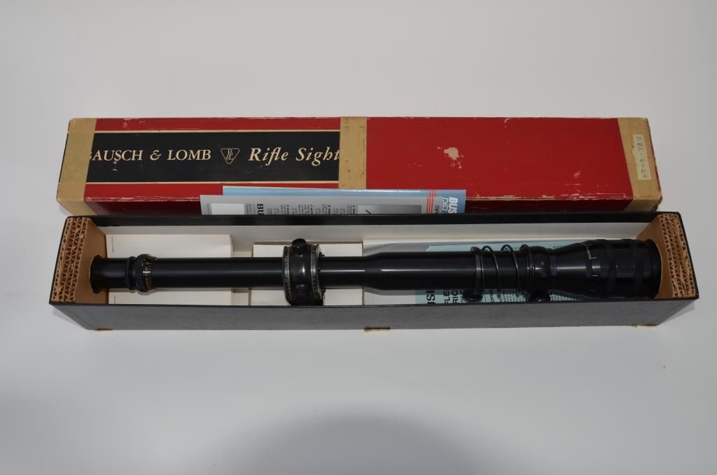 Bausch & Lomb rifle sight in factory cardboard box, Model BALvar 24 in like new condition with instructions manual; great optics! Est.: $25-$50.