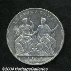 Bavaria. Ludwig I 2 taler 1846 Commemorating the Danube and Marin River Canal, Bust right/Male and female seated figures, Dav-595, KM441, AU. Important notice: Heritage usually auctions material at the rate of 200-250 lots per hour. On some occasions eBay Live bid software or the Internet may not be able to keep up with the pace of the auction. We recommend placing a realistic absentee bid now as insurance to avoid disappointment. Occasionally the auctioneer may eliminate or reject an eBay Live bid, and the auctioneer may also reopen a lot after the close of the eBay live bidding (usually because we missed an audience bid), and may reject your bid even if it shows you as the winning bidder. By bidding via eBay Live, you agree that Heritage may award the lot to another bidder at its sole discretion under the circumstances described above or any other reasonable circumstances. Also please note that all Heritage lots purchased through eBay Live carry a 20% Buyer's Premium. Please make sure you read the Terms and Conditions before you bid.