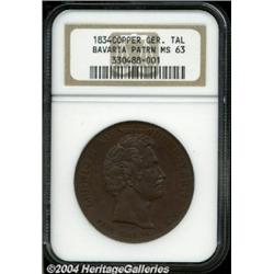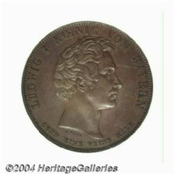 Bavaria. Ludwig I Copper Pattern Commemorative taler 1834, Bust right/Monument at Oberwittelsbach, type of Dav-572, type of KM406, MS63 NGC. Well struck with chocolate-brown patina. We can find no record of this copper striking in KM or Jaeger.From the Osage Collection. Important notice: Heritage usually auctions material at the rate of 200-250 lots per hour. On some occasions eBay Live bid software or the Internet may not be able to keep up with the pace of the auction. We recommend placing a realistic absentee bid now as insurance to avoid disappointment. Occasionally the auctioneer may eliminate or reject an eBay Live bid, and the auctioneer may also reopen a lot after the close of the eBay live bidding (usually because we missed an audience bid), and may reject your bid even if it shows you as the winning bidder. By bidding via eBay Live, you agree that Heritage may award the lot to another bidder at its sole discretion under the circumstances described above or any other reasonable circumstances. Also please note that all Heritage lots purchased through eBay Live carry a 20% Buyer's Premium. Please make sure you read the Terms and Conditions before you bid.