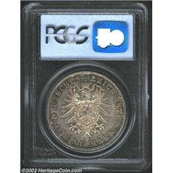 Bavaria. Ludwig II 5 Marks 1874D, KM502, AU55 PCGS. Lightly toned and a very scarce type in EF or be