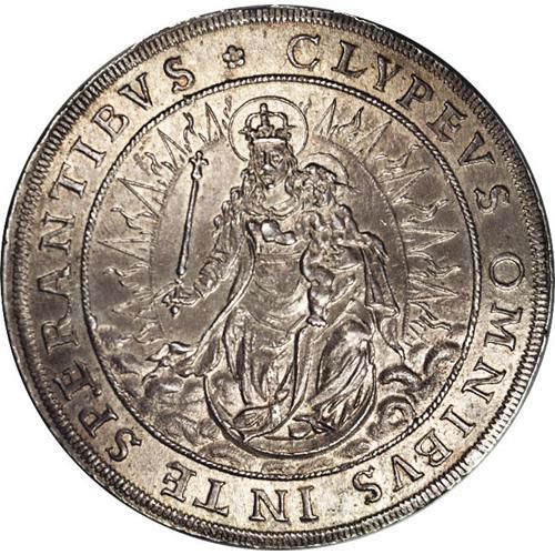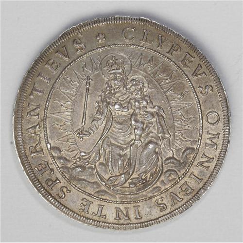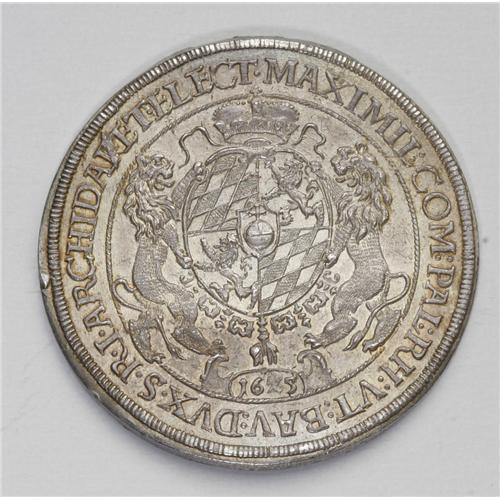 <B>Bavaria. Maximilian I Taler 1625, </B></I>KM42, D-6071A, Choice golden toned UNC. A very bold strike exhibiting a few tiny edge irregularities as made. A scarcer type with the Madonna facing half left.