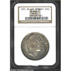 Bavaria. Maximilian II 2 Gulden 1855, KM465, Restoration of the Madonna Column in Munich. MS63 NGC. An attractive coin with old-time toning. Important notice: We expect to be auctioning lots at the rate of 200-250 per hour. Sometimes eBay Premier live bid software cannot keep up with that pace, so we strongly recommend that you place a realistic proxy bid now as insurance to avoid disappointment. Also please note that all Heritage/CAA lots purchased through eBay Premier carry a 20% Buyer's Premium. Please make sure you read the Terms and Conditions.