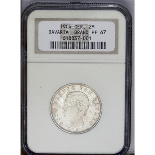 <B>Bavaria. Otto 2 Marks 1904D, </B></I>KM511, Proof 67 NGC. Lightly toned and very attractive. Ex Brand collection.