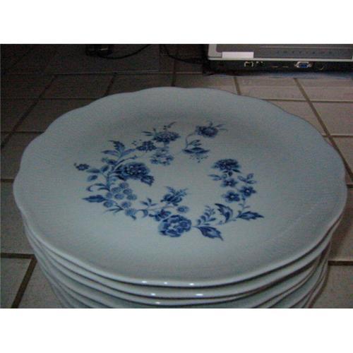 magnificent white and blue set of 9 Bavaria VOHENSTRAUSS Johann Saltman with number 412 and in excellent condition. free of chip,crack or crackle, just vintage imperfection. the plate each measures 10 inch in diameter. the blue flowers are amazingly beautiful. simple yet elegant. will decorate a nice dinner table.