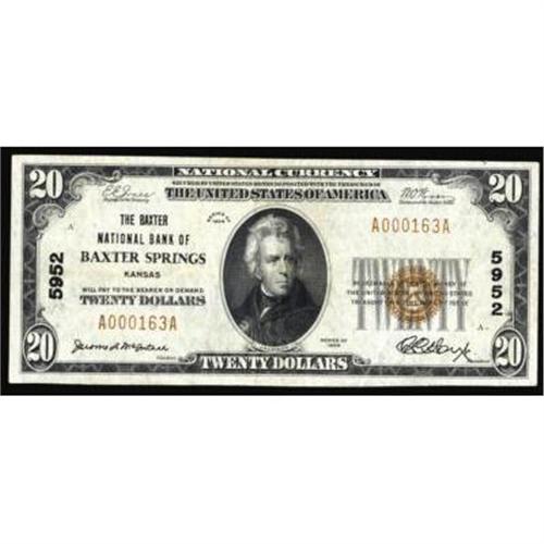 Baxter Springs, KS $20 1929 Ty 1 The Baxter NB