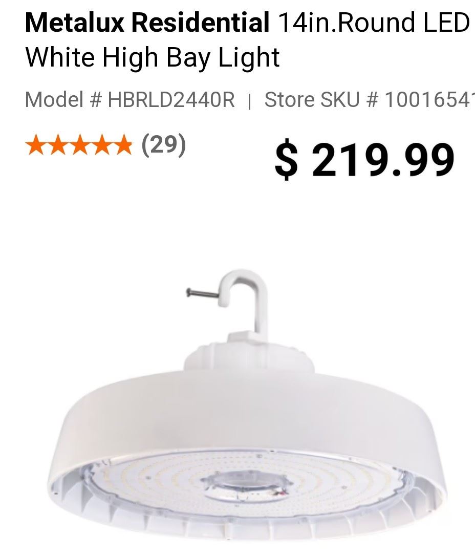14-inch round LED high bay light, energy-efficient with durable construction, new.