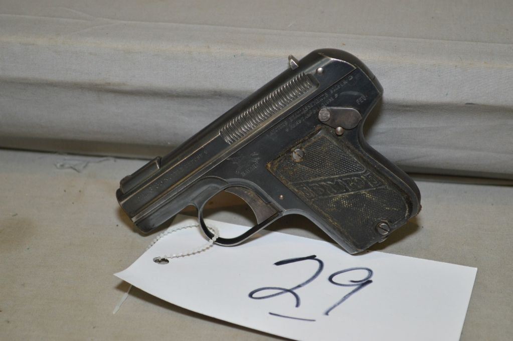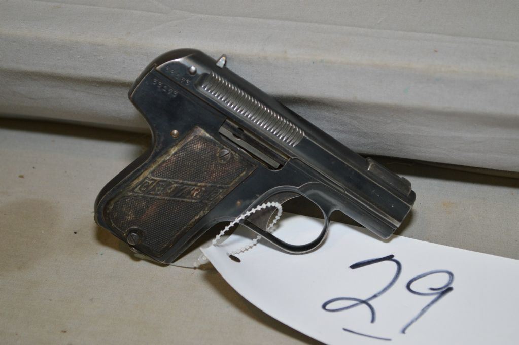 Bayard Model 1908 Pocket 6.35 MM Cal 6 Shot Semi Auto Pistol w/ 57 mm bbl [ fading blue finish with some light pitting in some areas, Bayard insignia grips, stamped Depose 6 ] Ser # 33173 12-6 Prohib Cert # 8749827