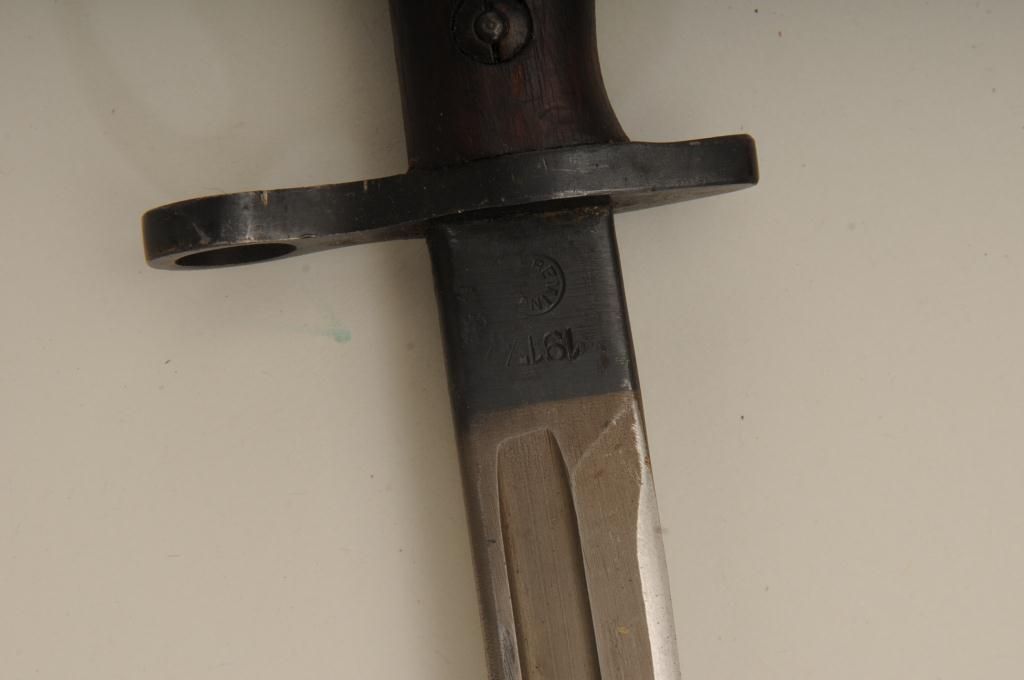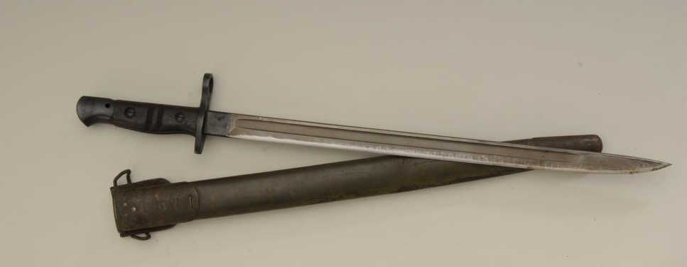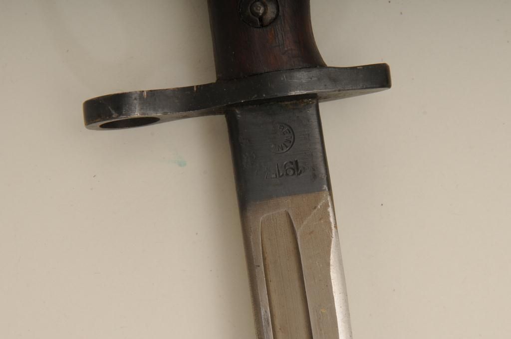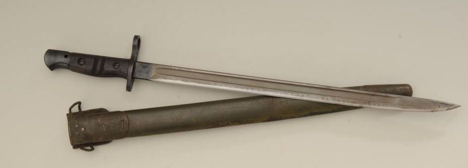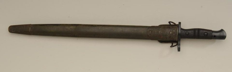 Bayonet for 1917 Enfield made by Remington-UMC in very good plus to near fine condition with scabbard and leather hanger dated 1917 also. Est.: $200 -$400.