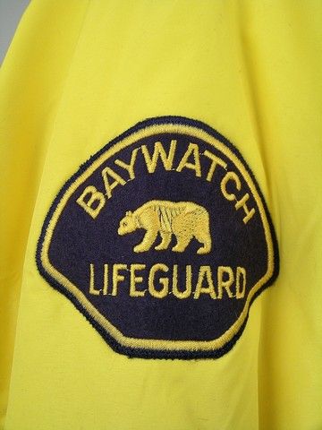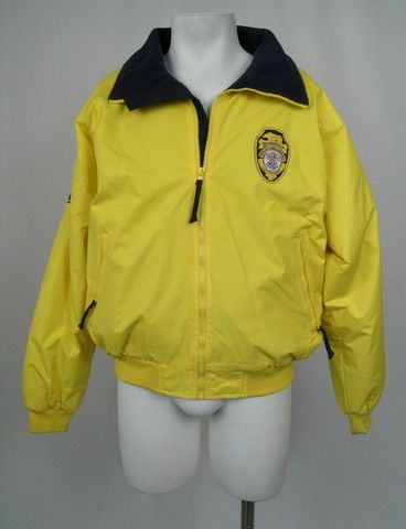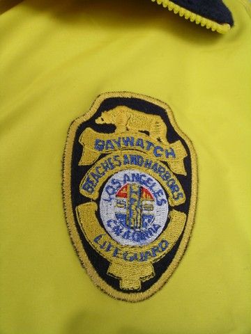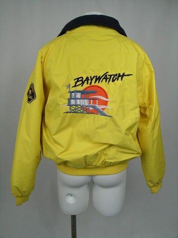Bright yellow "Tri-Mountain" jacket with dark blue fleece lining. (size L). Actors jacket - with Baywatch logo and title on back.