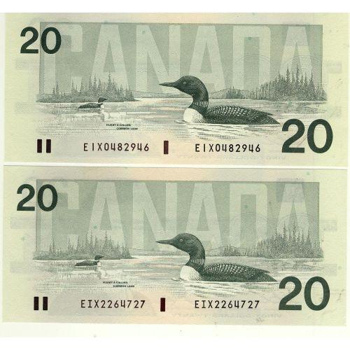 Bc-58aA and BC-58aA-i 1991 $20 EIX with and without serifs, both Gem Unc