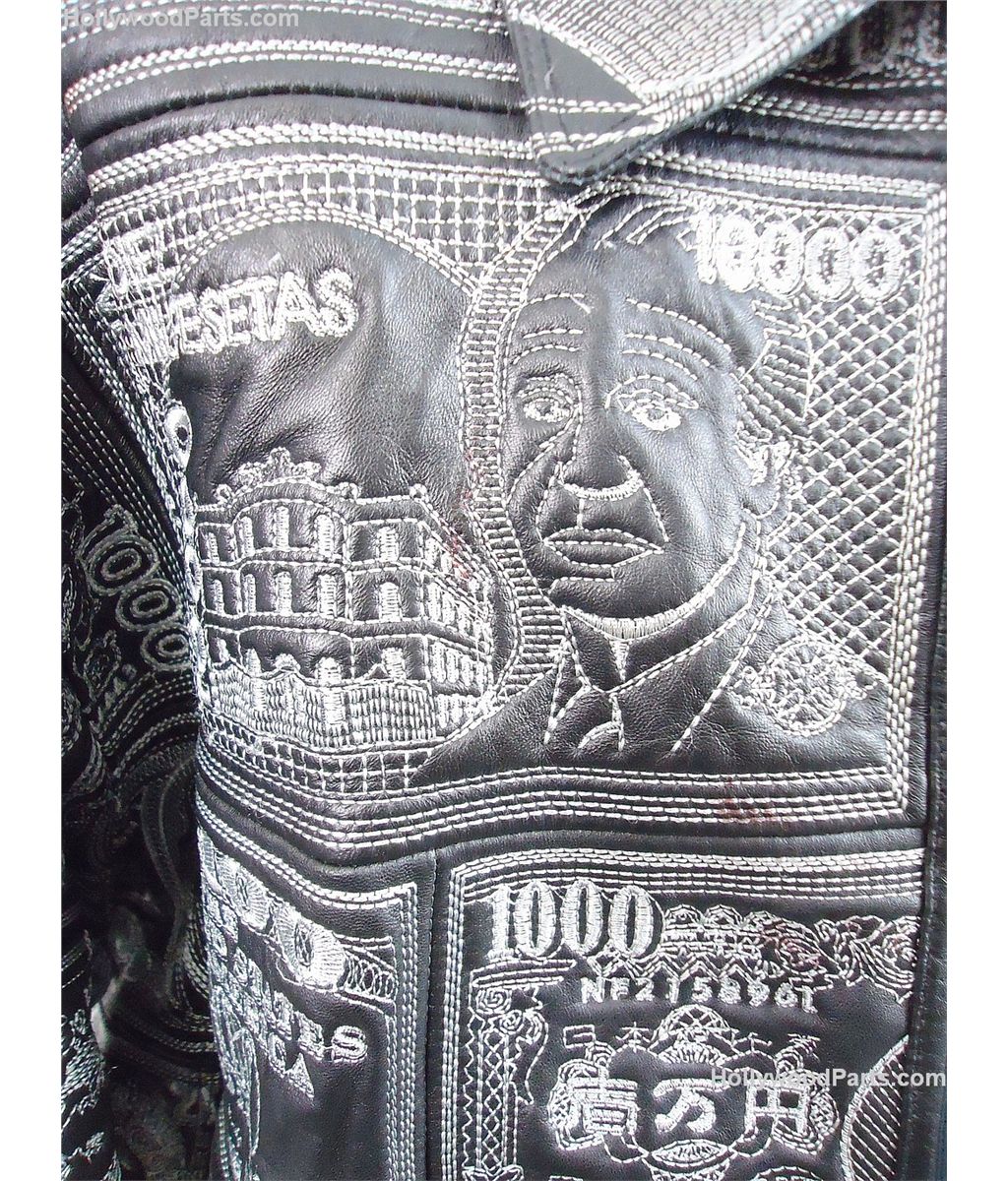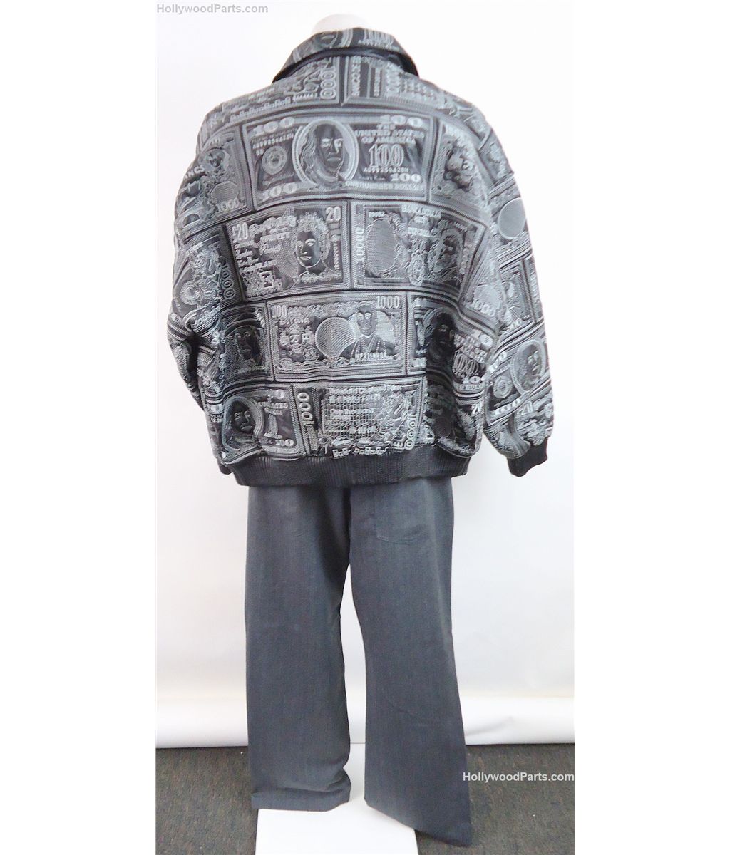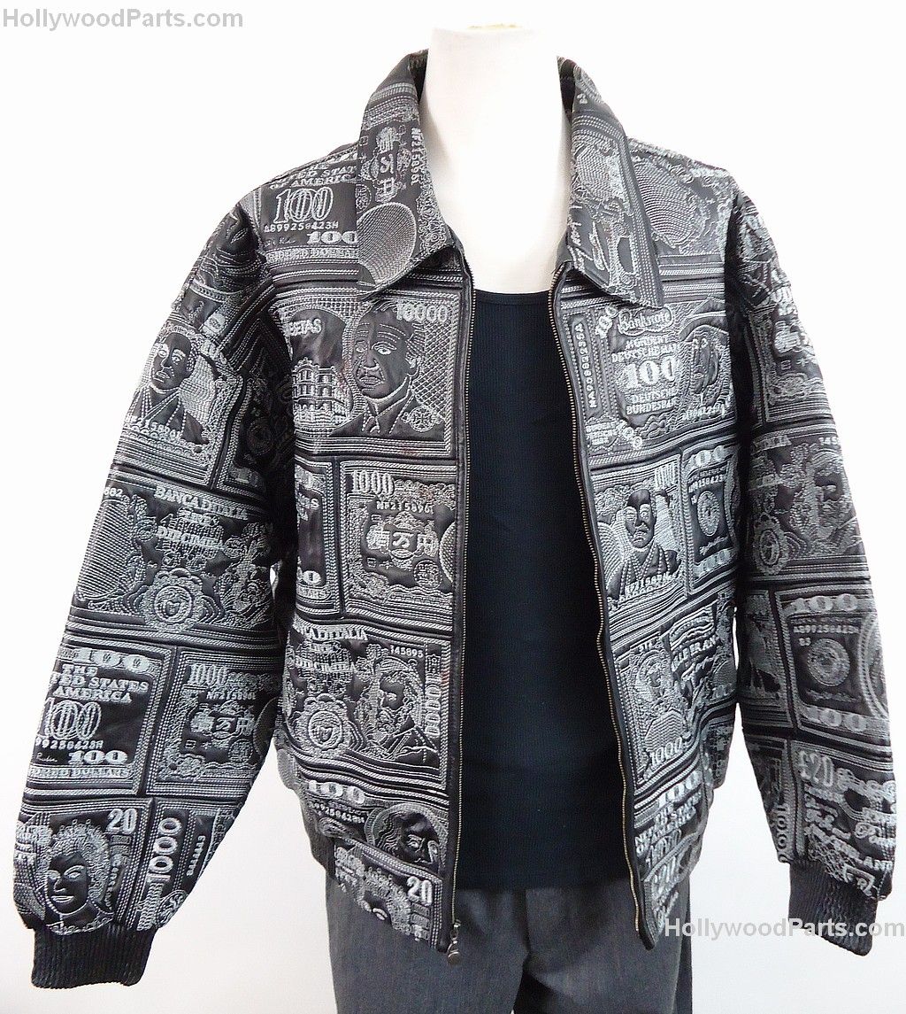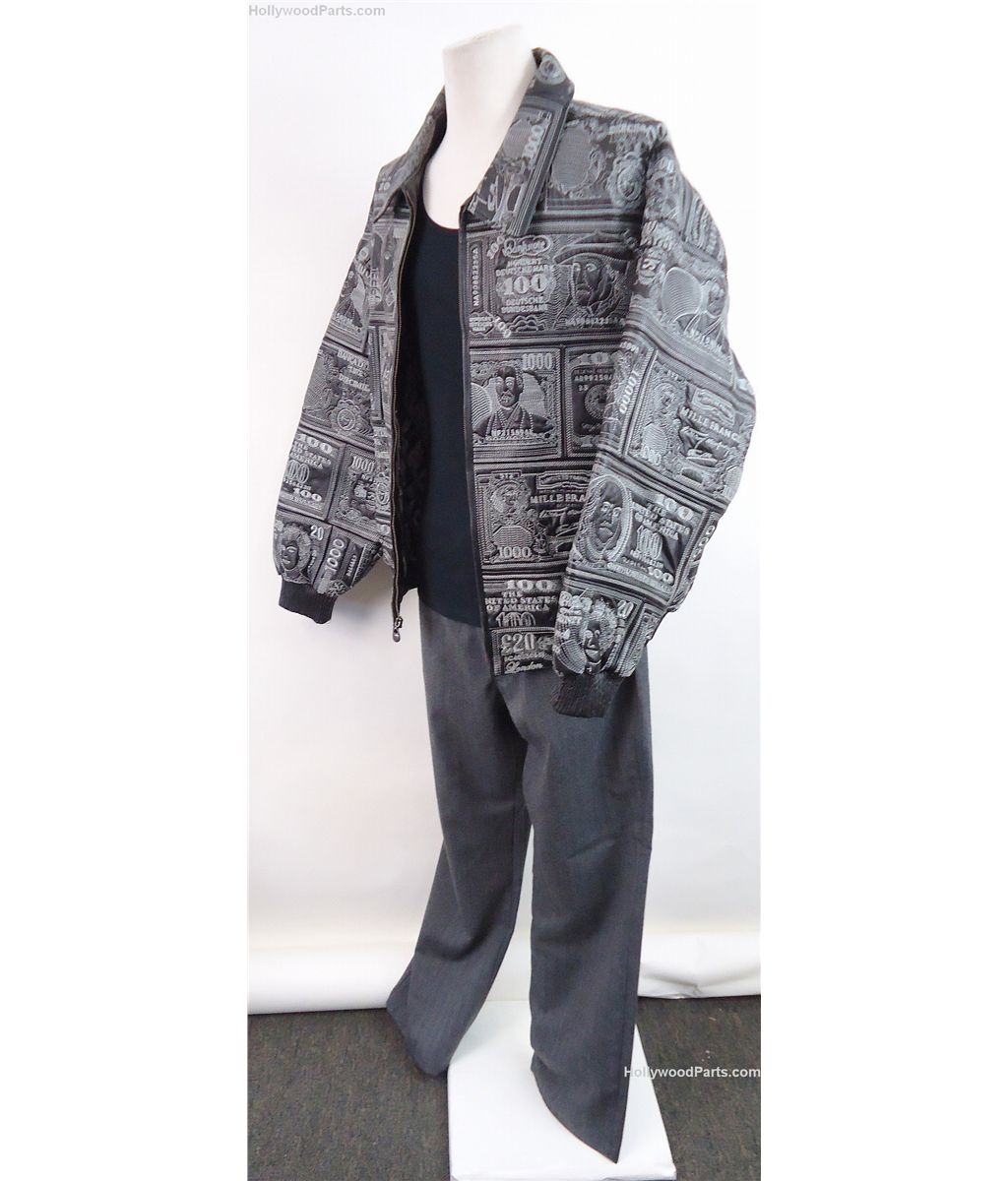 Hero wardrobe worn by Vince Vaughn as Raji in Be Cool. Costume includes Pello Mode embroidered black leather money jacket, black and white dress shoes, Sean John pinstripe pants and black tank top shirt.