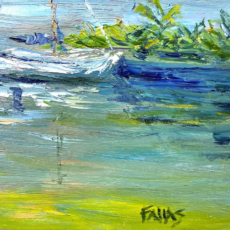 "Beach House" is an original oil painting on canvas by Elliot Fallas, hand signed by the artist. This piece comes gallery wrapped. Includes Letter of Authenticity. Measures approx. 20" x 16" (image). The sides of the canvas are painted and it can be hung as is, but a frame is definitely recommended.