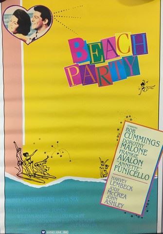 Beach Party (Warner Home Video, 1963). Window Card. Starring: Robert Cummings and Dorothy Malone. There is minor edge wear damage. Excellent. (20" X 30").