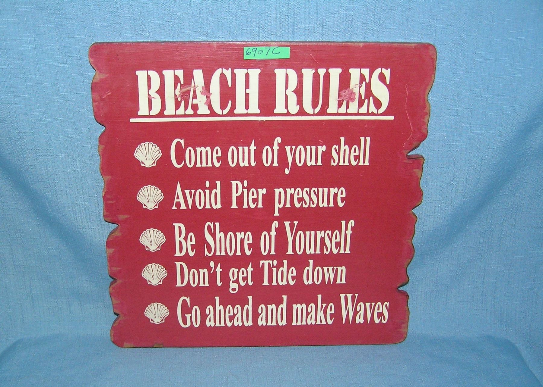 Beach Rules modern Display sign on hard board maroon sign est. value $35.00-$40.00