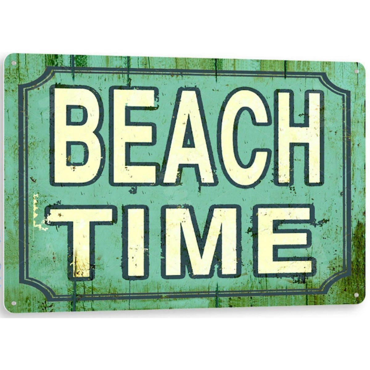 Beach Time decorative metal sign. 8" X 11" with pre-drilled holes for mounting.Â