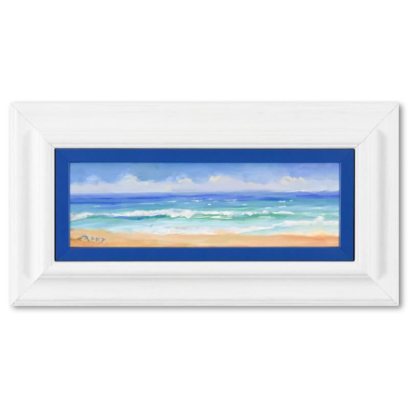 Beach by Raad Original. All available information is listed in the description and shown in the photo. "Beach" is an original acrylic painting on board by Lucelle Raad, hand signed by the artist. Includes Letter of Authenticity. Measures approx. 17" x 9" (frame), 11.5" x 3.5" (image).