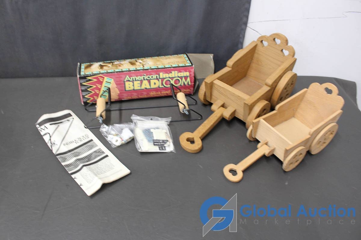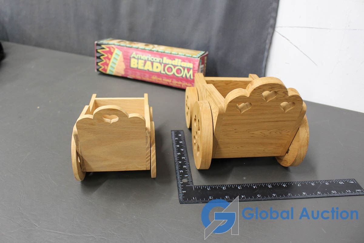 Bead Loom & (2) Wooden Wagons