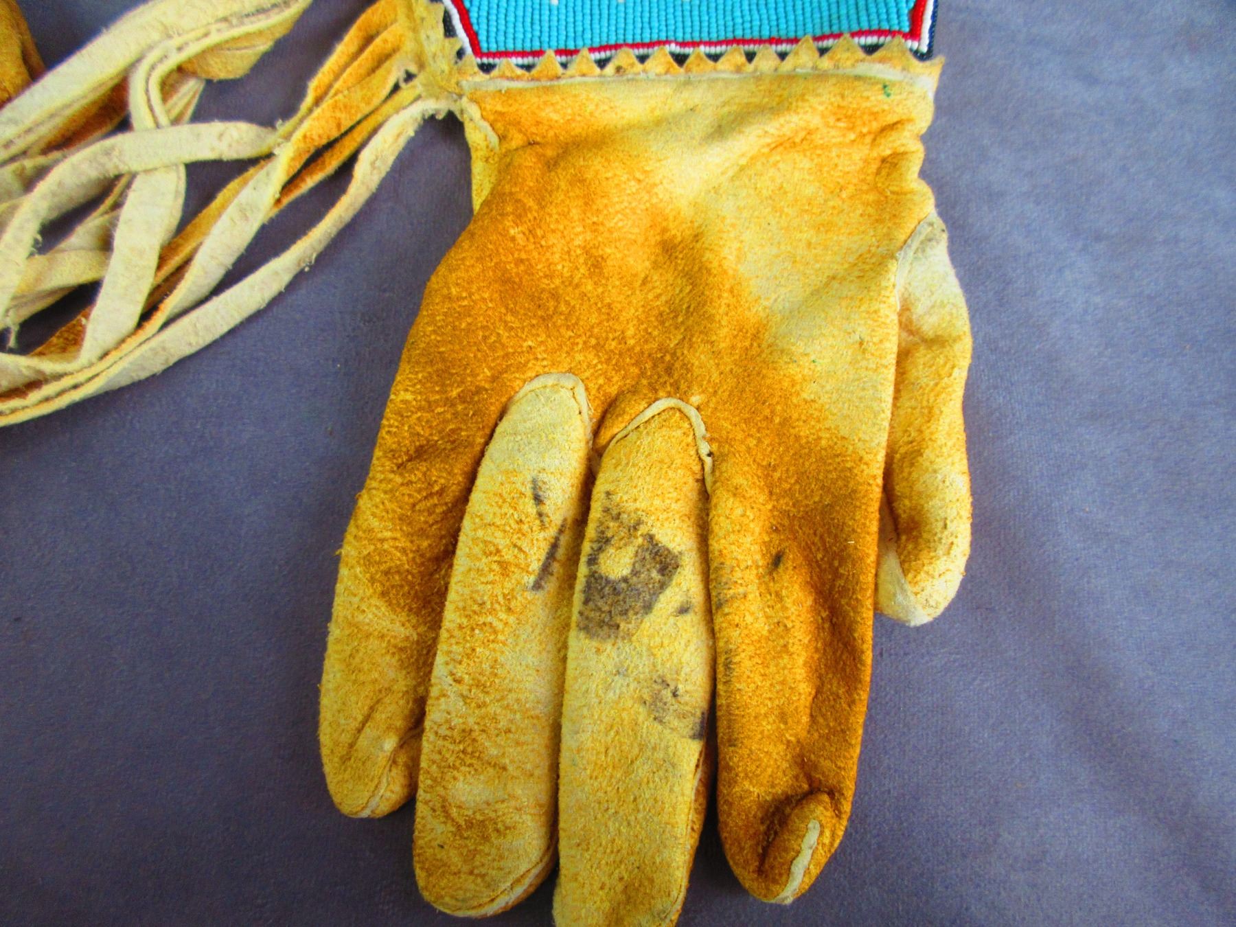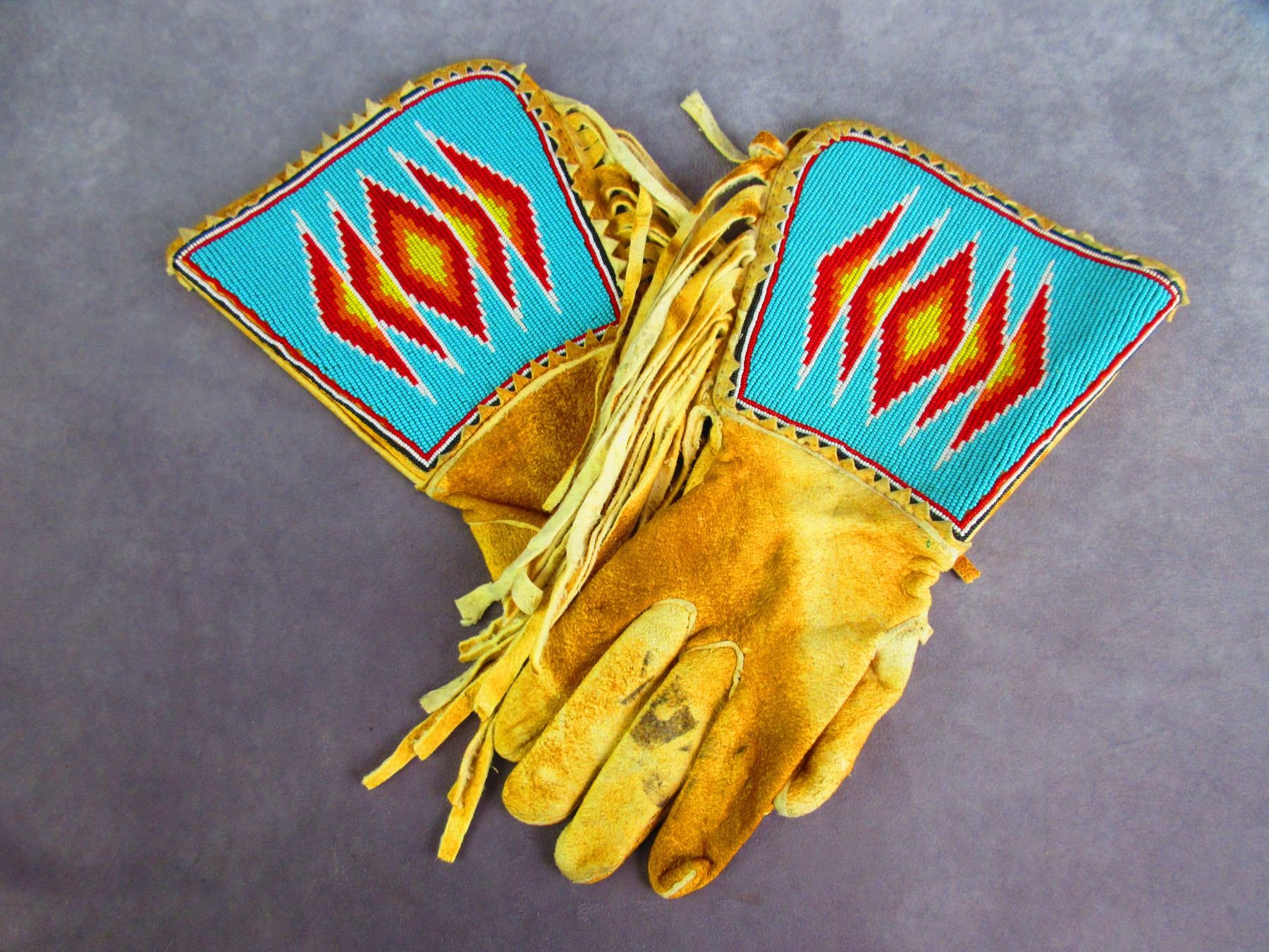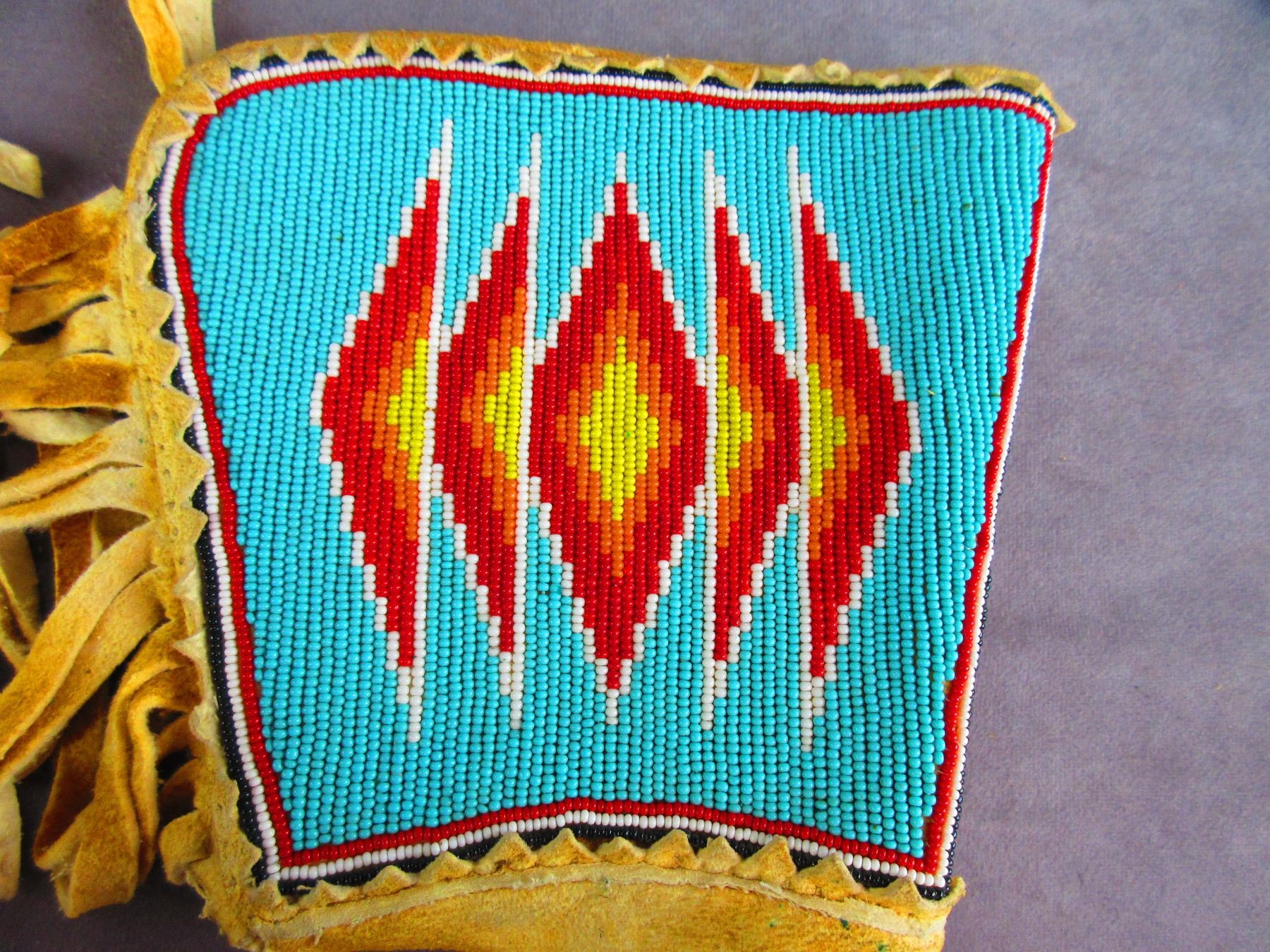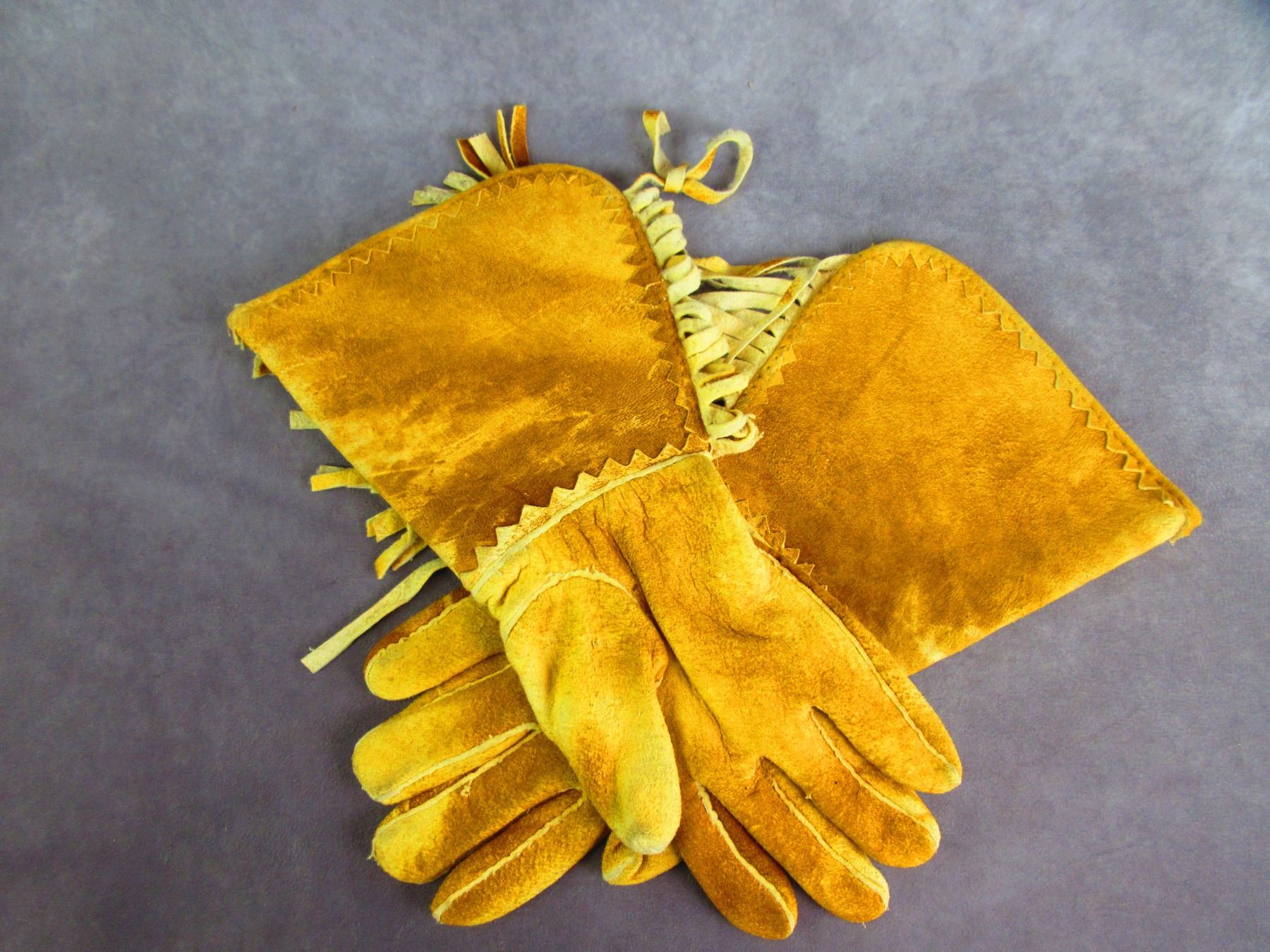 Beaded And Fringed Smoked Leather Gauntlets- 14" X 7"- New Condition
