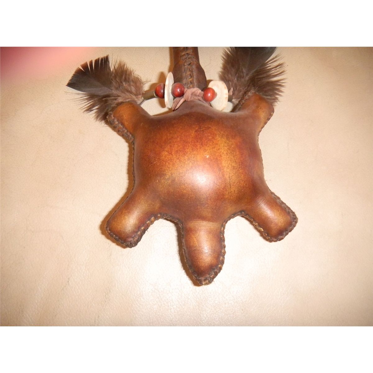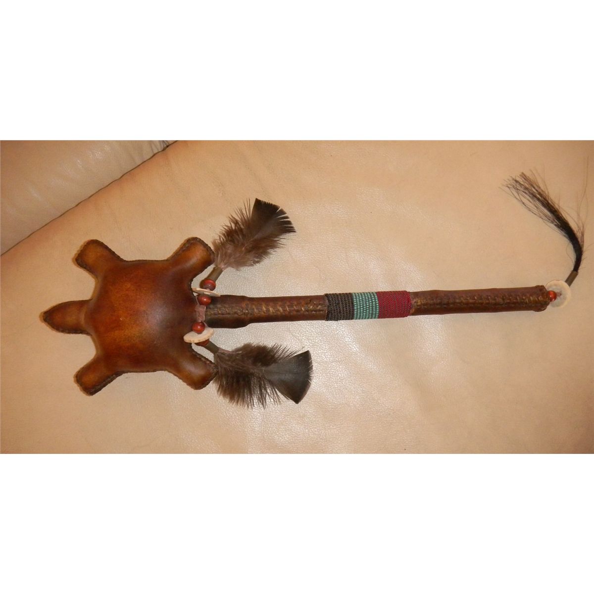 Sioux Beaded and Antler and Hide smoking pipe - 12"x 2 1/2" x 2" Shipping 10.50