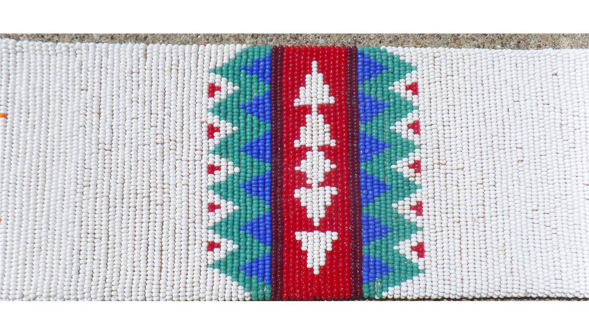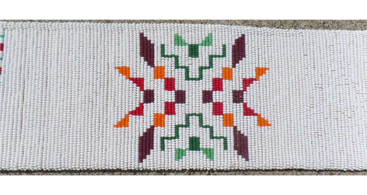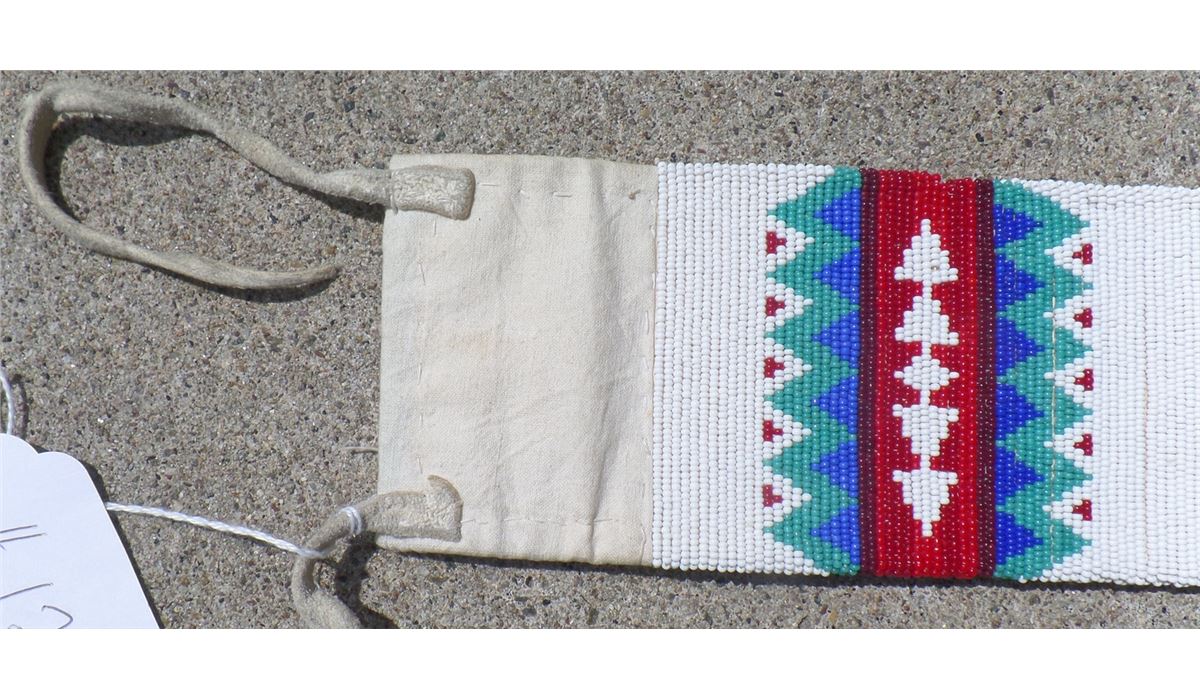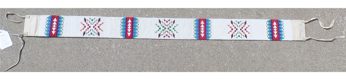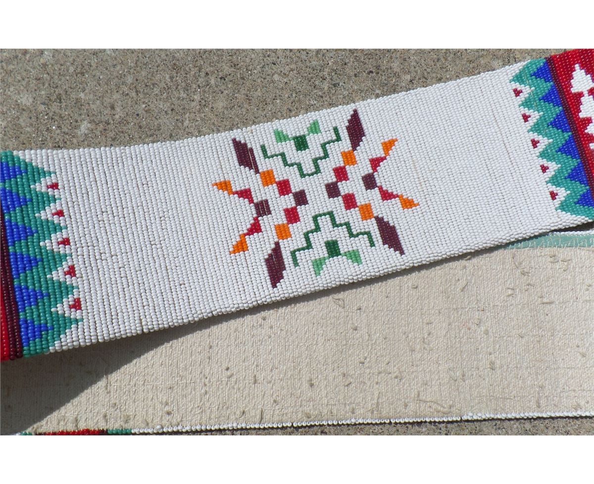 Beaded Apache Belt from the 1940's. This belt is 40 x 3 1/2 inches and has nice beadwork with a geometric design. It is made from glass, canvass and deer hide. Nice Condition. Shipping $20