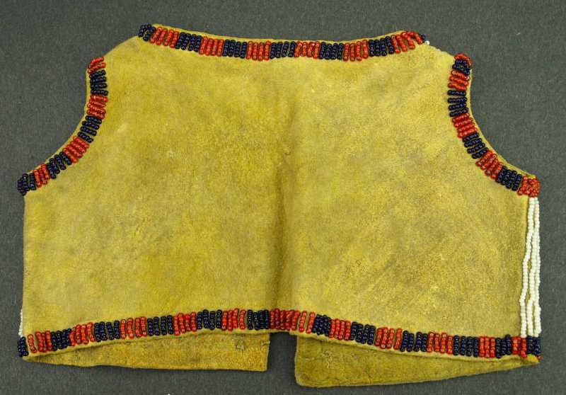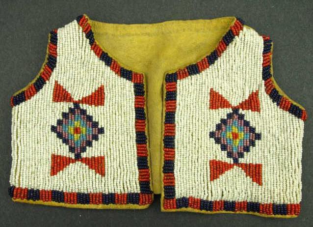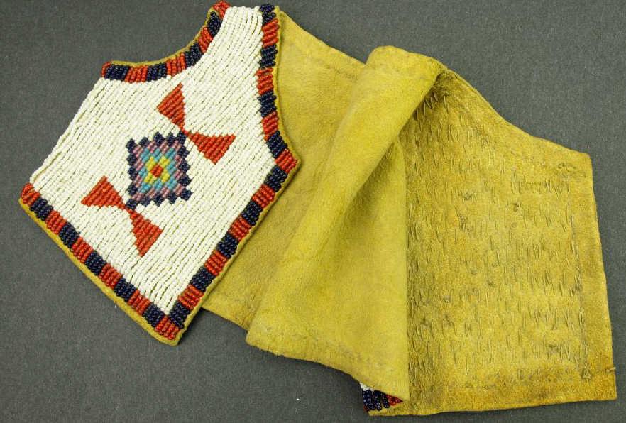 Fully beaded to front, beaded at top, bottom & arm openings on backside. 5 1/2" X 8".