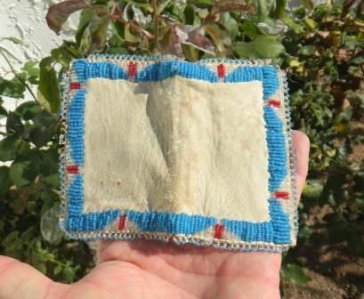 Plains Beaded Bag - Deer hide - believed to be Dakota Circa 1920. Measures 3x4 inches. Shipping $10.00