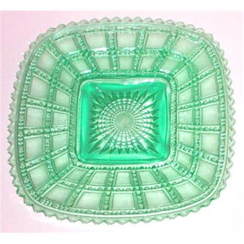<tr><td>Title:Beaded Block Green Depression Glass Square</td></tr>