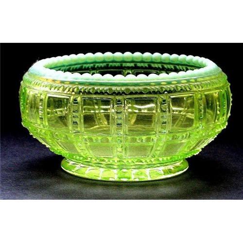<tr><td>Title:Beaded Block Vaseline Opalescent Glass Bowl</td></tr>