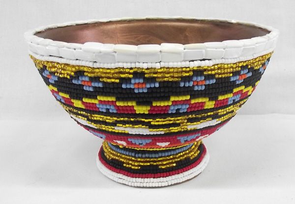Beaded Bowl by Kills Thunder, measures 5.5"H x 9"W, beautifully beaded in vibrant colors