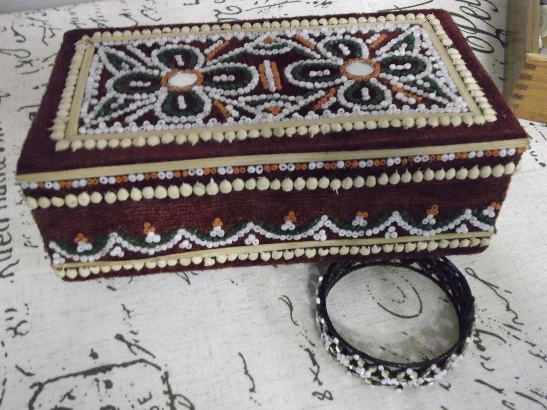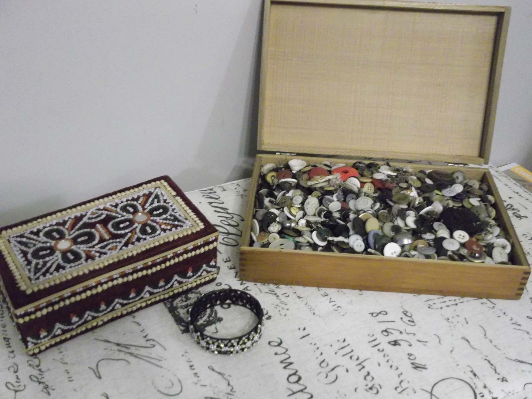 Beaded Box And Beaded Bracelet W/ Box Of Old Buttons