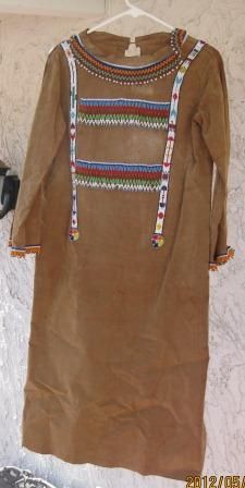 Beaded Cloth dress about Size 6 or 8. Beaded front and Back, Circa 1940. Probably Canadian Cree Circa 1940 Good Condition. Shipping $15.00