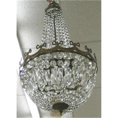 This is a wonderful beaded crystal chandelier with decorative metal bows, large baguet crystals and four interior lights. It is wired for USA use.