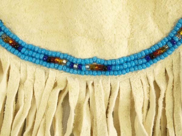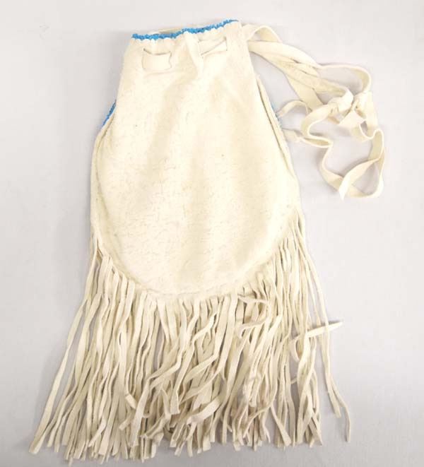 Beaded Doe Skin Leather Bag, measures 9.5''L which includes fringe x 5''W