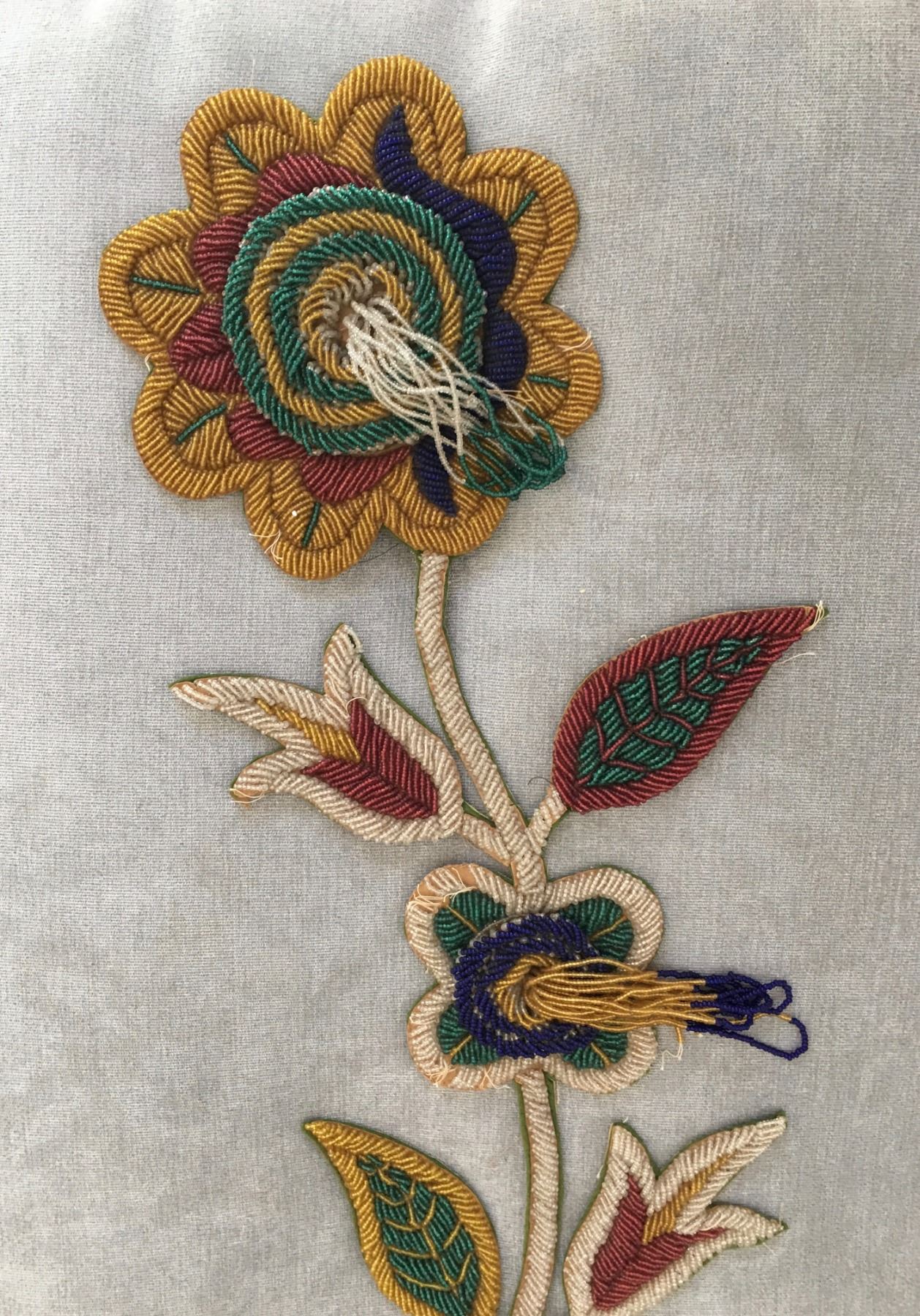 This is an amazing example of turn of the century beadwork. Patterns and materials changed were lost and forgotten. This is a combination of all the above with an amazing array of beaded.