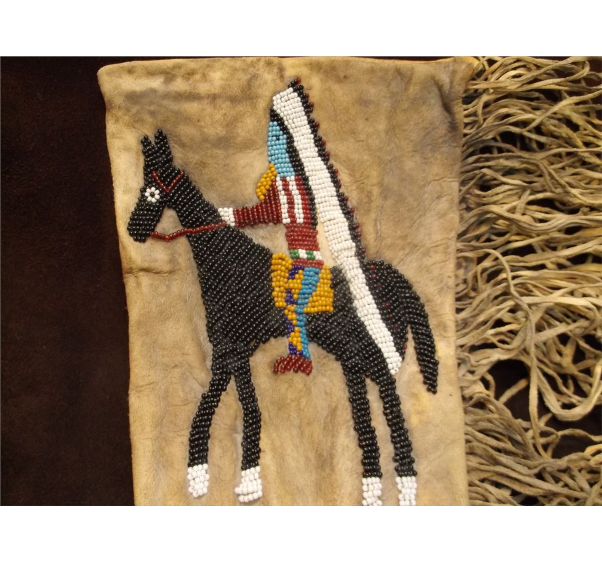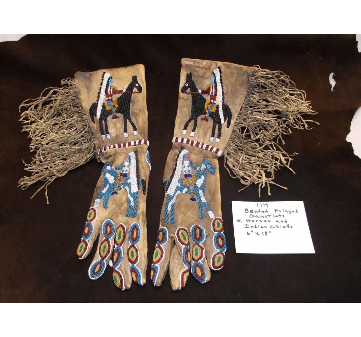Beaded Fringed Gauntlets with Horses and Indian Chiefs 6" X 18"